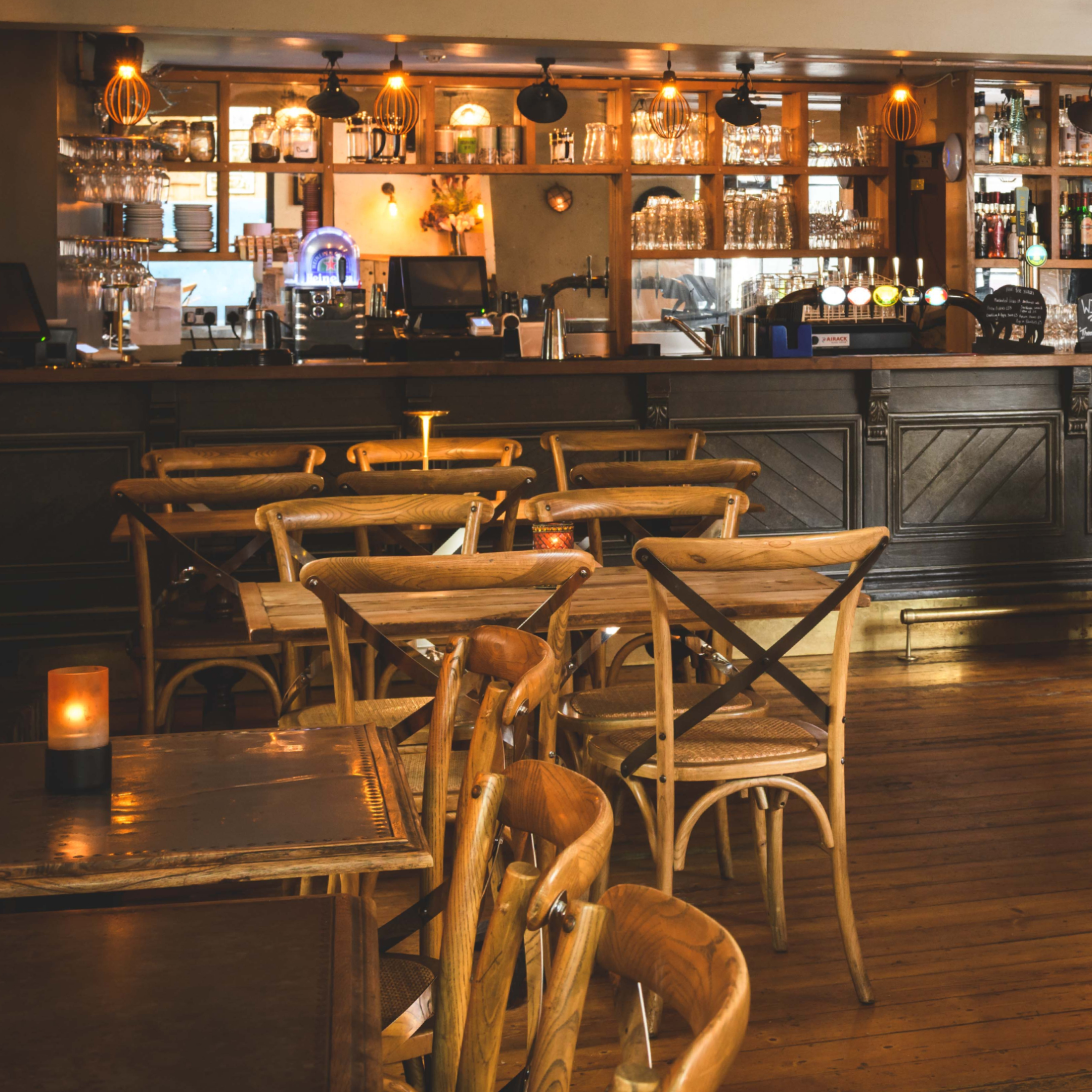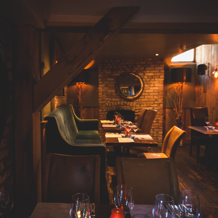 A relaxed and intimate setting in the heart of the downstairs bar, with a warmth and character all of its own. Opens onto the terrace when the weather allows.